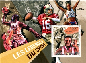 № 202А/13. Postal block of Burundi. Legends of sports. Carl Lewis, Jackie Joyette-Kersey