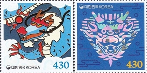 № Южная Корея – 20231201. Republic of Korea. The Year of the Dragon. A series with 2 stamps