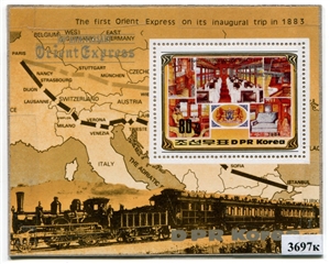№ 3697к. Postal block of DPRK 1984. Steam Locomotives