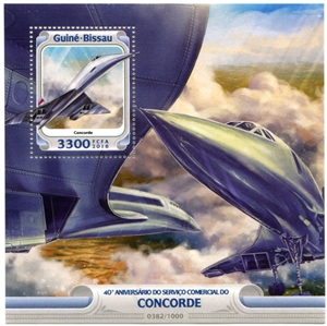 № 215А/1. Postal block of Republic of Guinea-Bissau. 40th Anniversary of Concorde commercial service. Airplanes