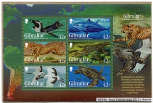 № 3624к. Postal block of Gibraltar 2013. Fauna