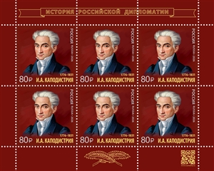 The postage stamp provides a portrait of Ioannis Kapodistrias.