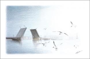 № ОХ/006/001. Postcard St. Petersburg “Palace Bridge”, (pencil)