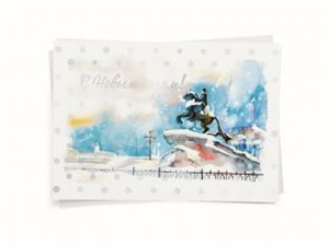№ ОХ/007/007. New Year's Postcards St. Petersburg “Bronze Horseman”, (watercolor)