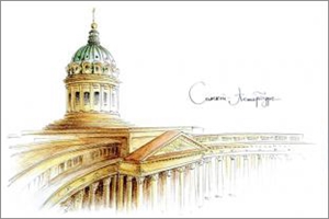 № ОХ/010/003. Postcard St. Petersburg “Kazan Cathedral”, (ink watercolor)