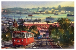 № ОХ/181/003. Postcard Vladivostok “Cable Railway”, (watercolor)