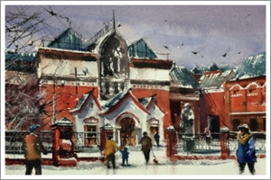 № ОХ/202/014. Postcard Moscow “Tretyakov Gallery”, winter (watercolor)
