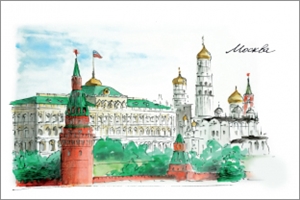 № ОХ/210/001. Postcard Moscow “Moscow Kremlin”, (ink watercolor)