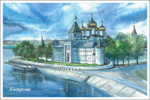 № ОХ/231/001. Postcard Golden Ring of Russia. Kostroma “Trinity Cathedral”, (watercolor)