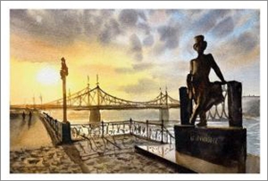 № ОХ/381/006. Postcard Tver “Monument to Alexander Pushkin, Starovolzhsky Bridge” (watercolor)