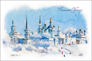 № ОХ/642/001. Postcard Veliky Ustyug “Panorama winter”, (watercolor)
