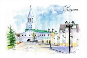 № ОХ/701/003. Postcard Kazan “Spasskaya Tower of the Kazan Kremlin”, (watercolor)