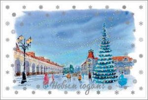 № ОХ/НГ/015. New Year's Postcards Ufa “Happy New Year”, (watercolor)