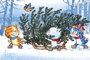 № ПАВИ-RZ507. Postcard “Christmas Tree on a Sled”