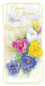 № 2026-004/5. Happy 8th of March! Crocuses on the background of a spring landscape