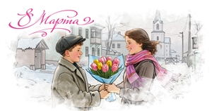 № 2026-008/5. March 8th. A boy and a girl with a bouquet of tulips