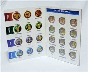 № 04731. Cardboard album “Zodiac Signs” with 12 souvenir coins “Zodiac Signs”