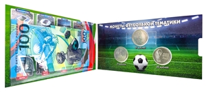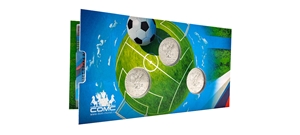 № СМВ00043-2. Cardboard album “2018 FIFA World Cup Russia” (green, 3 coins + 1 banknote)