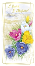Happy 8th of March! Peony-shaped roses, an envelope with a postcard