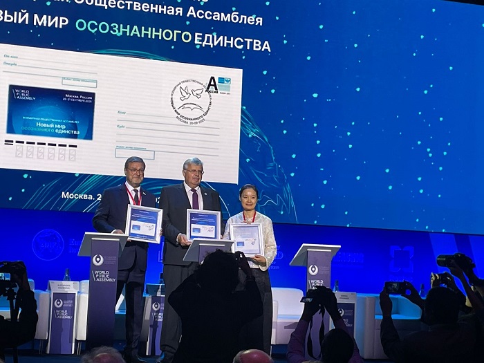 20 сентября состоялась торжественная церемония гашения художественного маркированного конверта, посвящённого Всемирной Общественной Ассамблее «Новый мир осознанного единства»