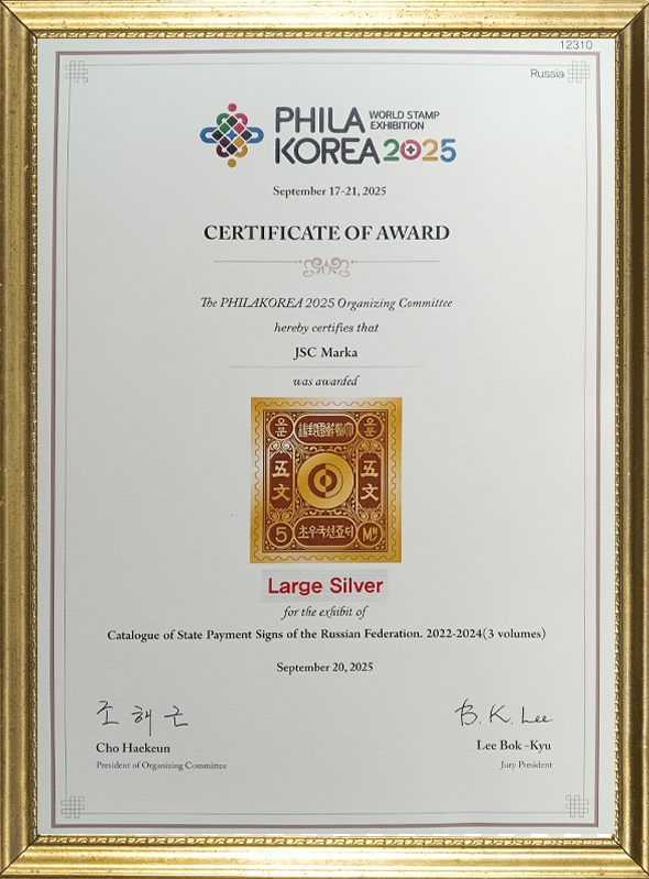 Акционерное общество «Марка» награждено медалью Всемирной выставки марок PHILAKOREA 2025