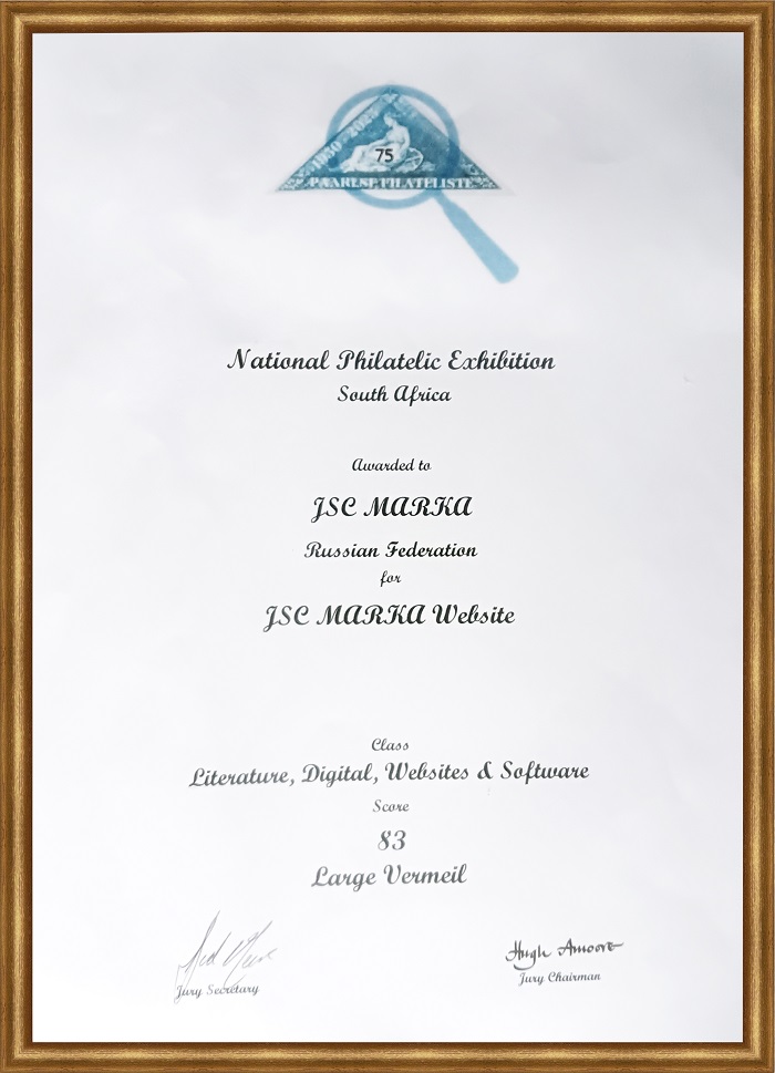 Сайт АО «Марка» награждён большой позолоченной медалью филателистической выставки