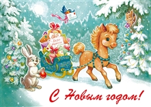 С Новым годом! Лошадка везёт подарки